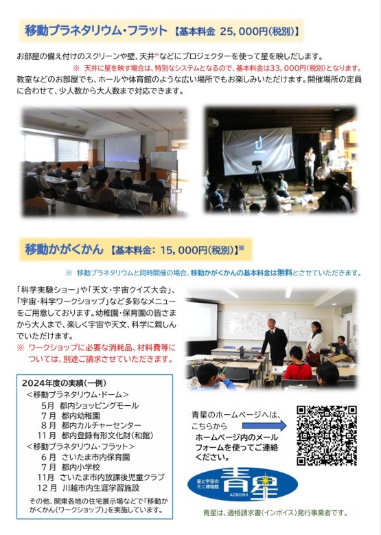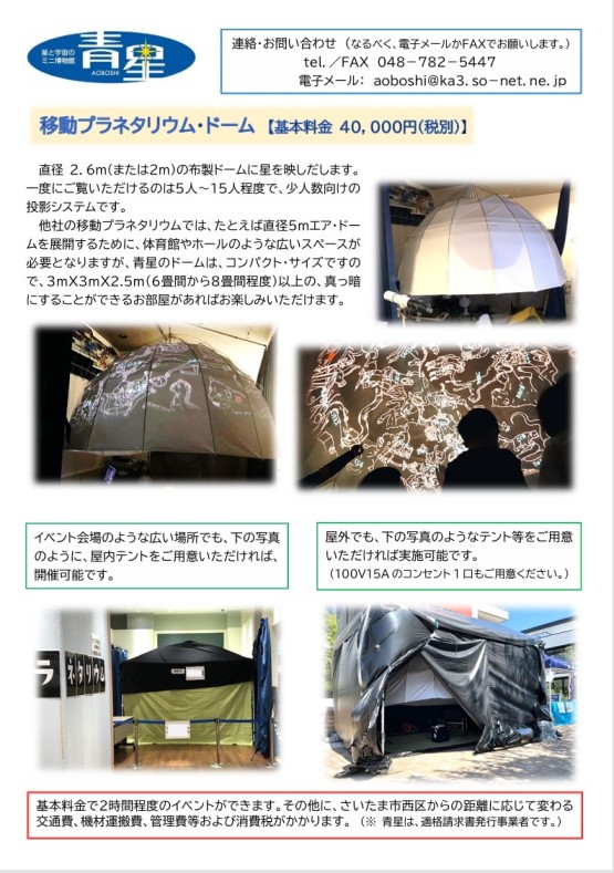 移動かがくかん・移動プラネタリウム 「星と宇宙のミニ博物館 青星」